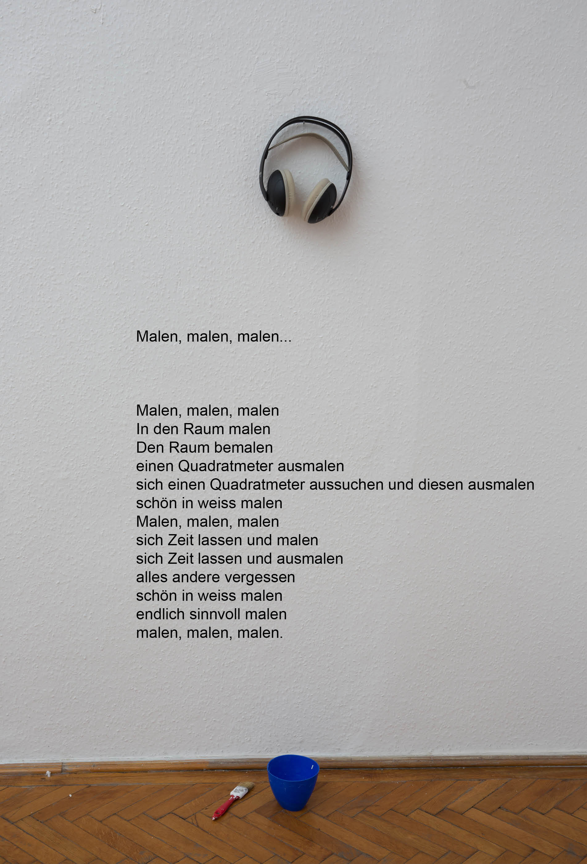 The audience is animated by a song to paint the exhibition wall. The performance is the restoration of the former exhibition.